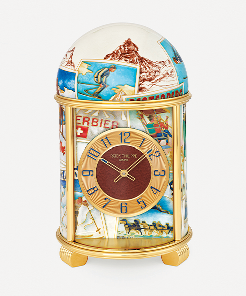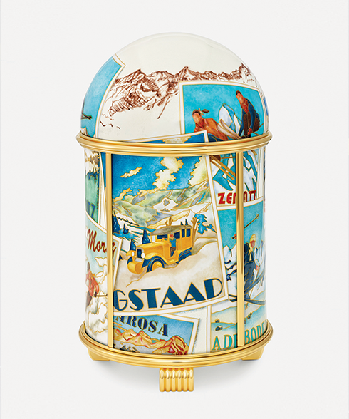 Inspirada en los antiguos carteles de las estaciones de esquí suizas, esta pieza única, referencia 20191M-001, en esmalte cloisonné Grand Feu evoca la edad de oro del turismo alpino y el esplendor del diseño gráfico helvético de mediados del siglo XX. Su estética combina el espíritu aventurero de los deportes de invierno con la precisión artesanal más exquisita.