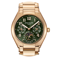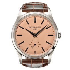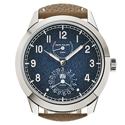 Con su estilo inspirado en los antiguos relojes de aviador de Patek Philippe, su práctico segundo huso horario y la indicación de la fecha vinculada a la hora local, el Calatrava Pilot Travel Time se ha consolidado como un reloj de viaje original, funcional y con una fuerte personalidad. Lanzado en 2015 en una caja de oro blanco y esfera azul, referencia 5524G-001, este modelo se presentó en 2018 en una versión de oro rosa con esfera marrón degradada en negro, referencia 5524R-001.